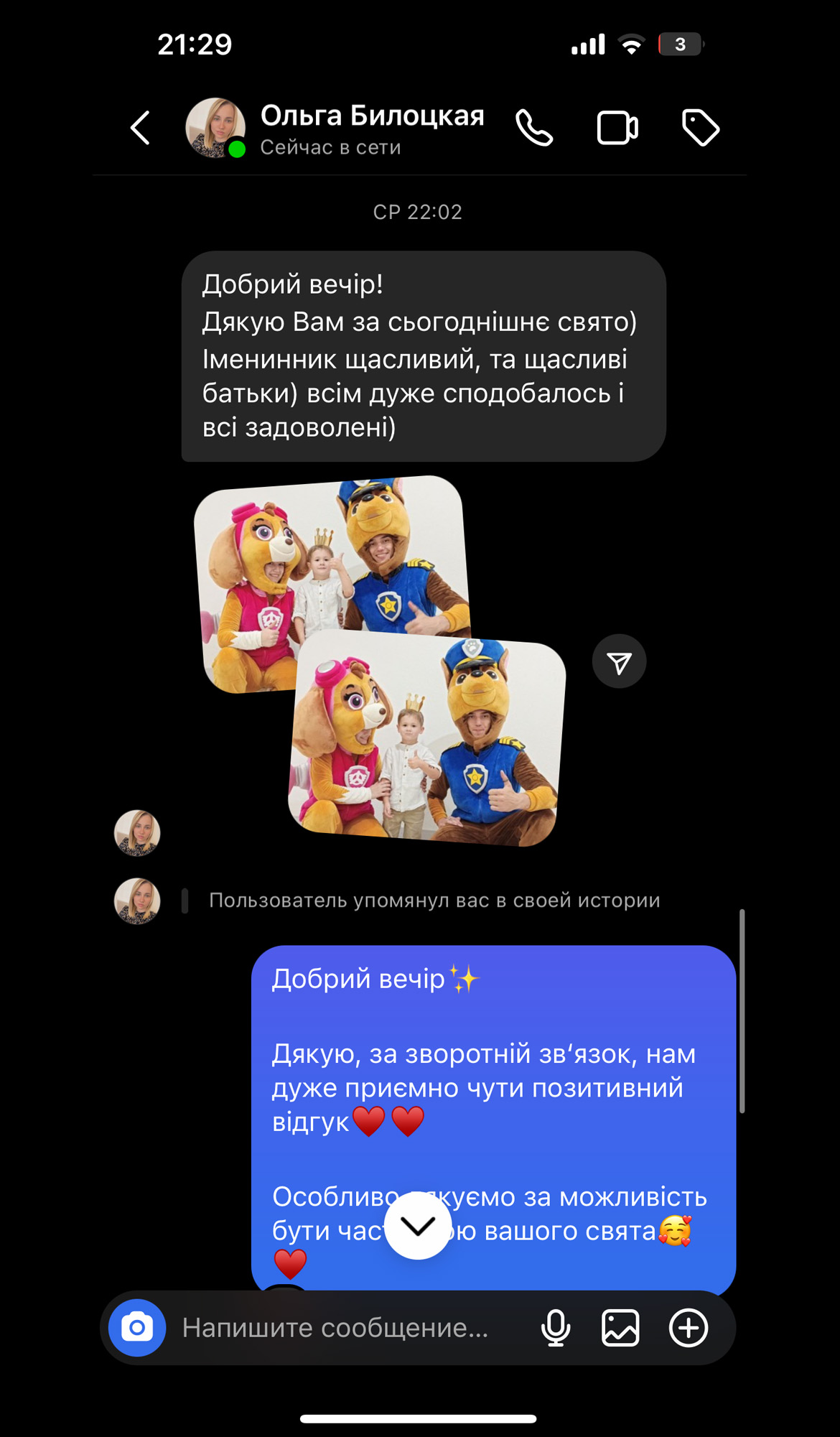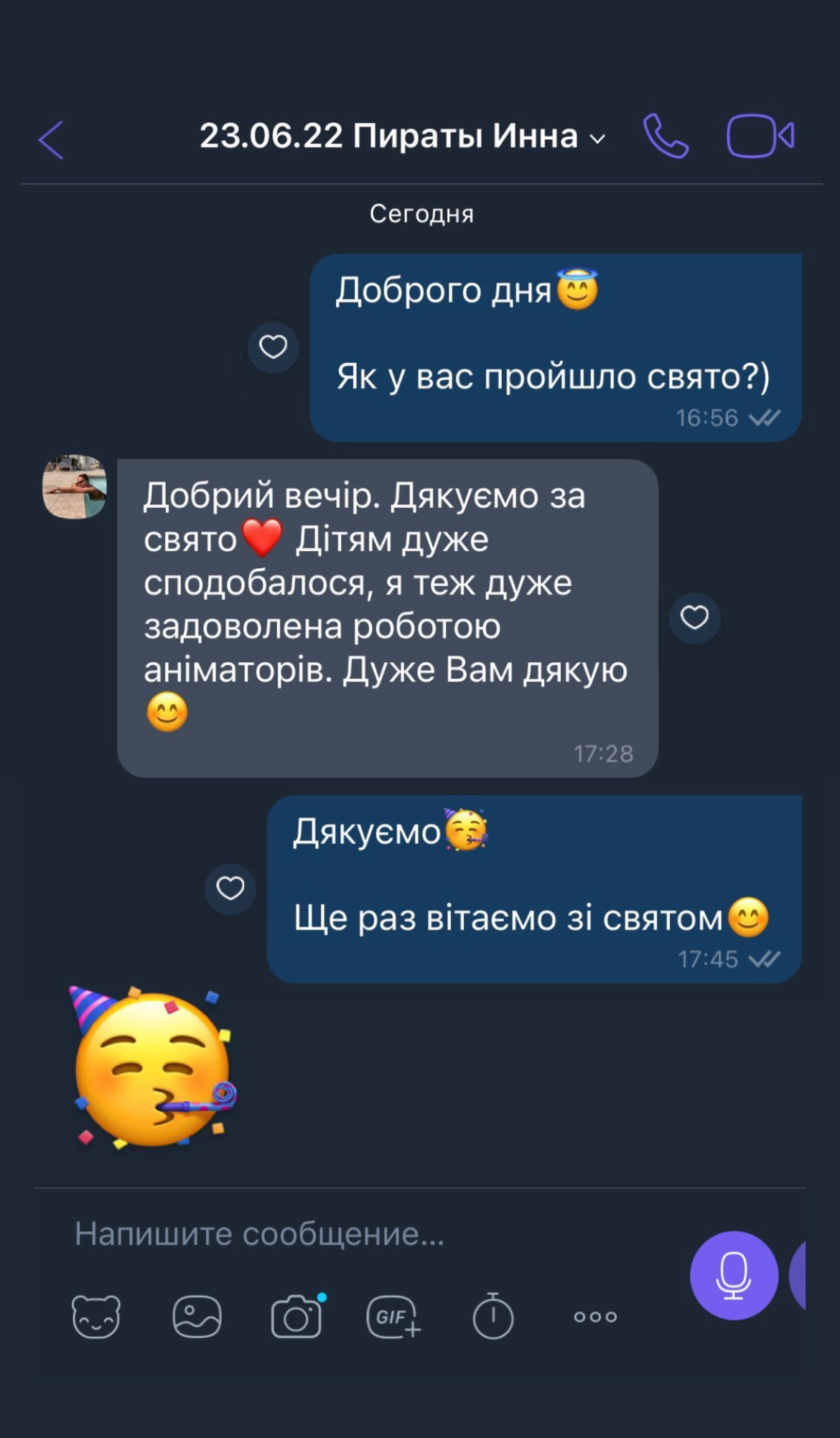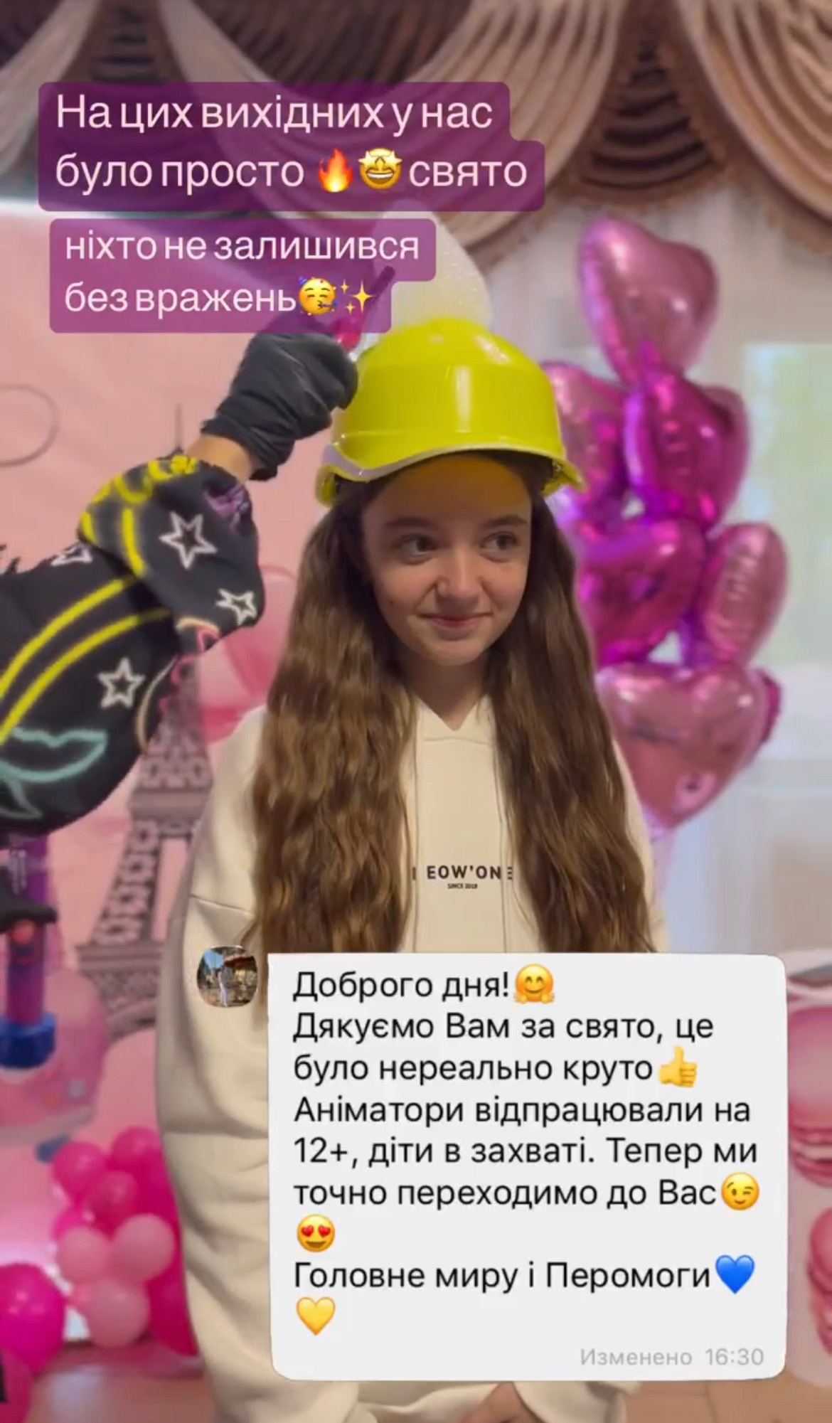 Для свята на День народження, кількість дітей 16, тривалість - 3 години