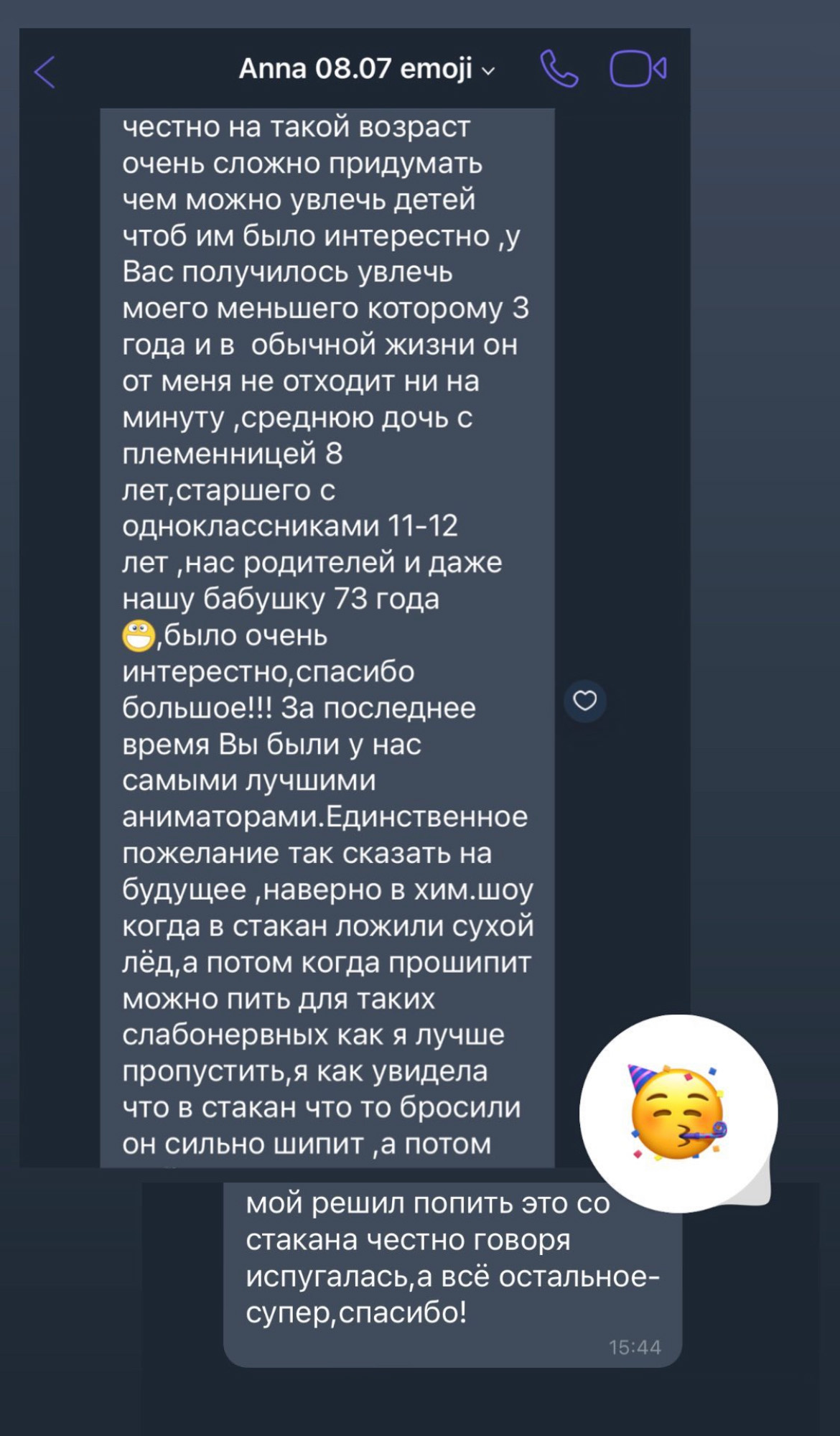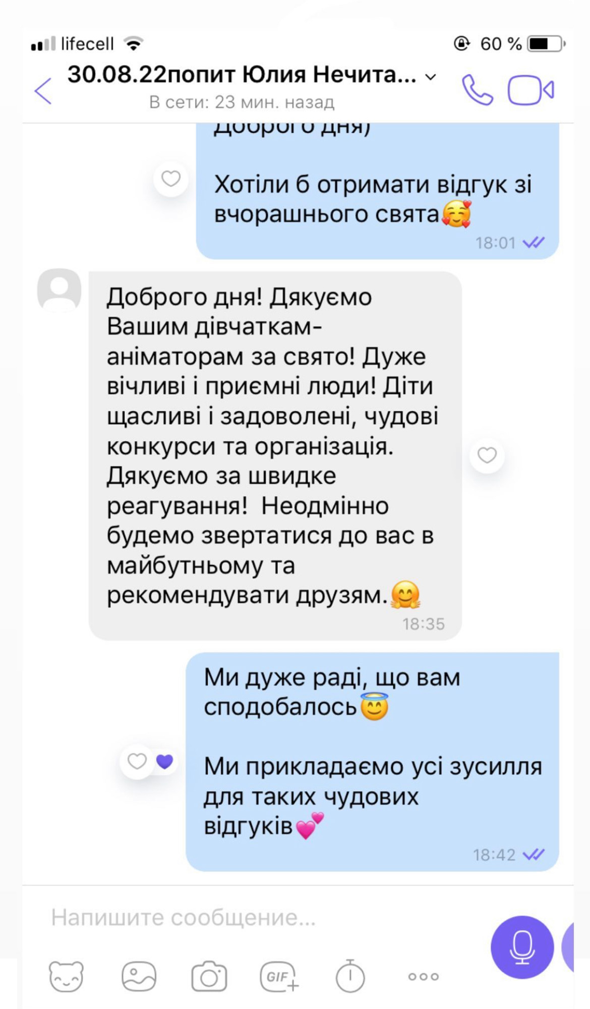 Для свята на День народження, кількість дітей 25, тривалість - 60 хвилин
